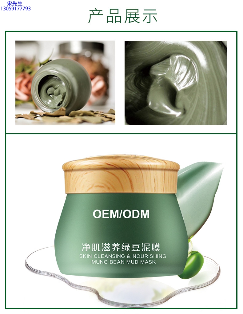 宏利_泥膜深层清洁补水保湿绿豆泥膜 泥膜oem/OEM加工贴牌